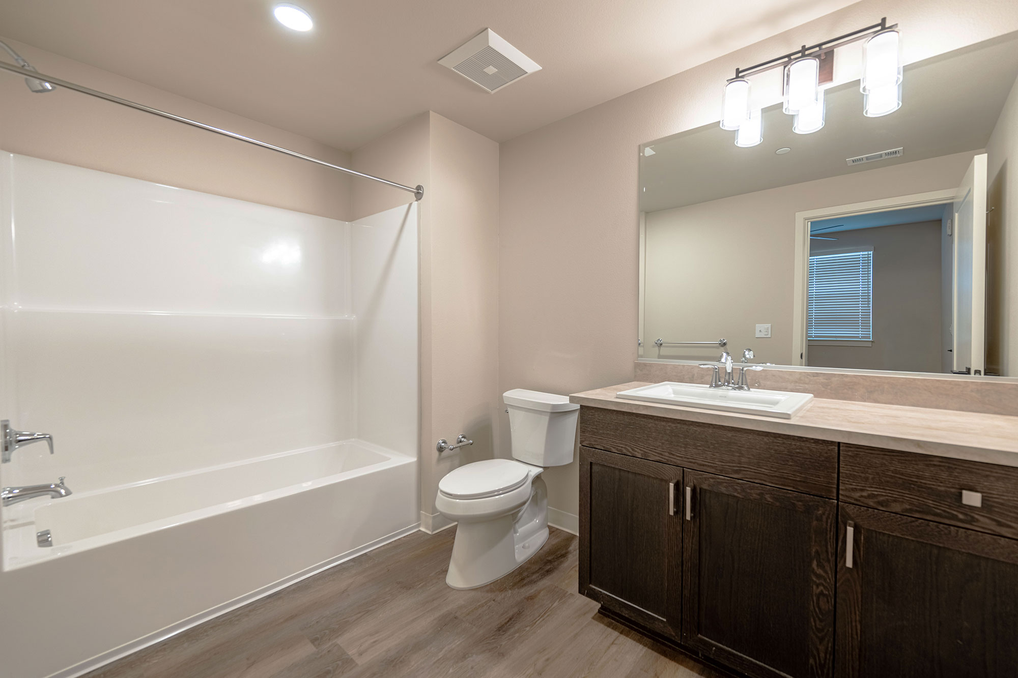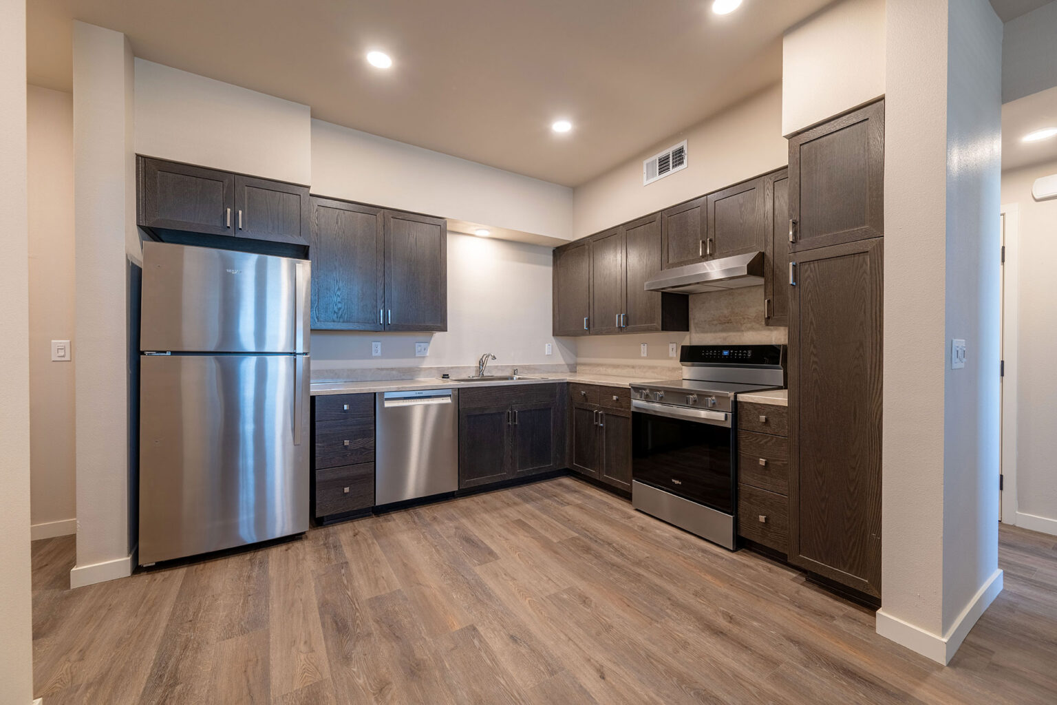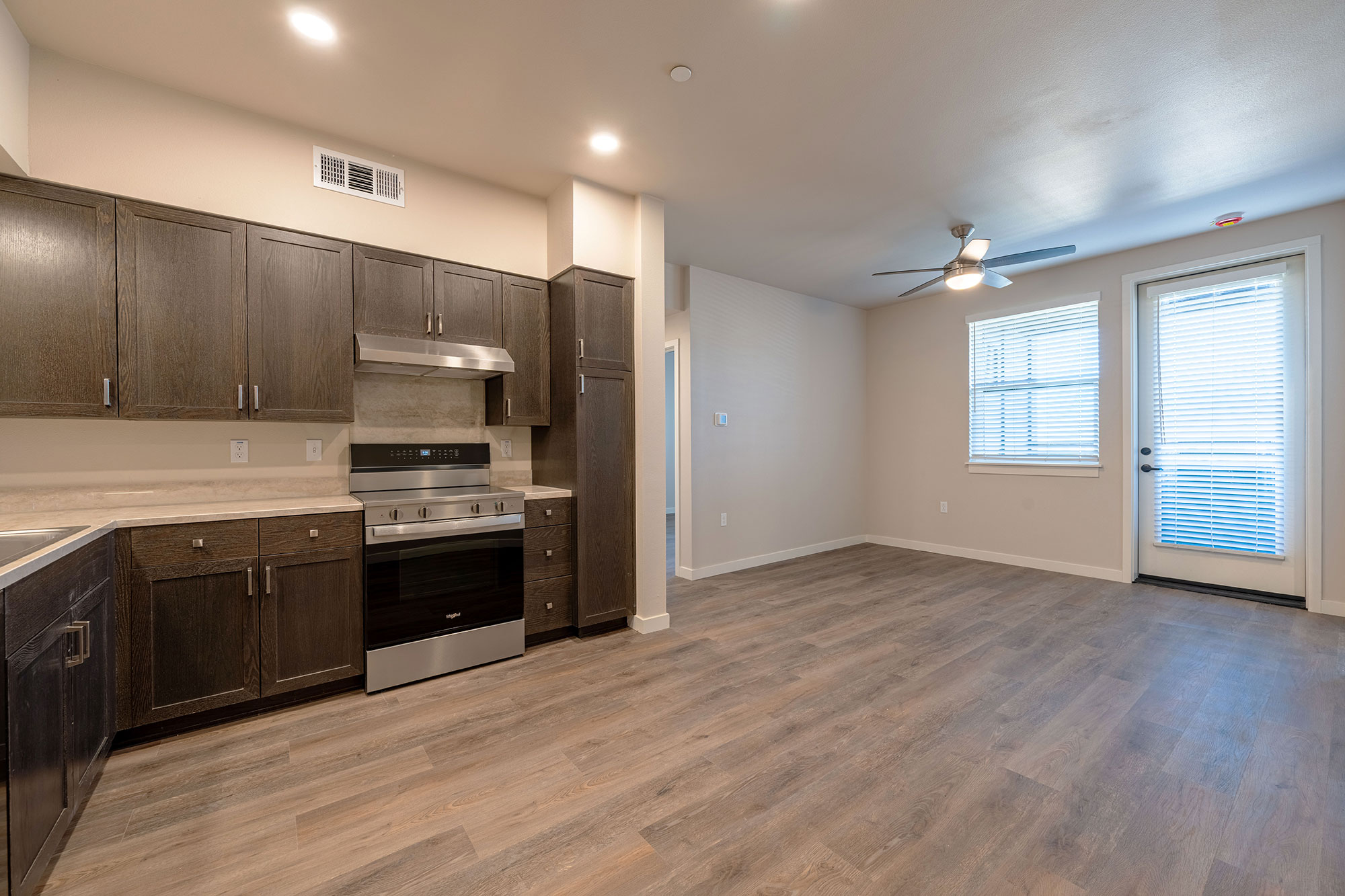 - Energy efficient appliances, quartz counter-tops, wood cabinetry, and hard surface flooring